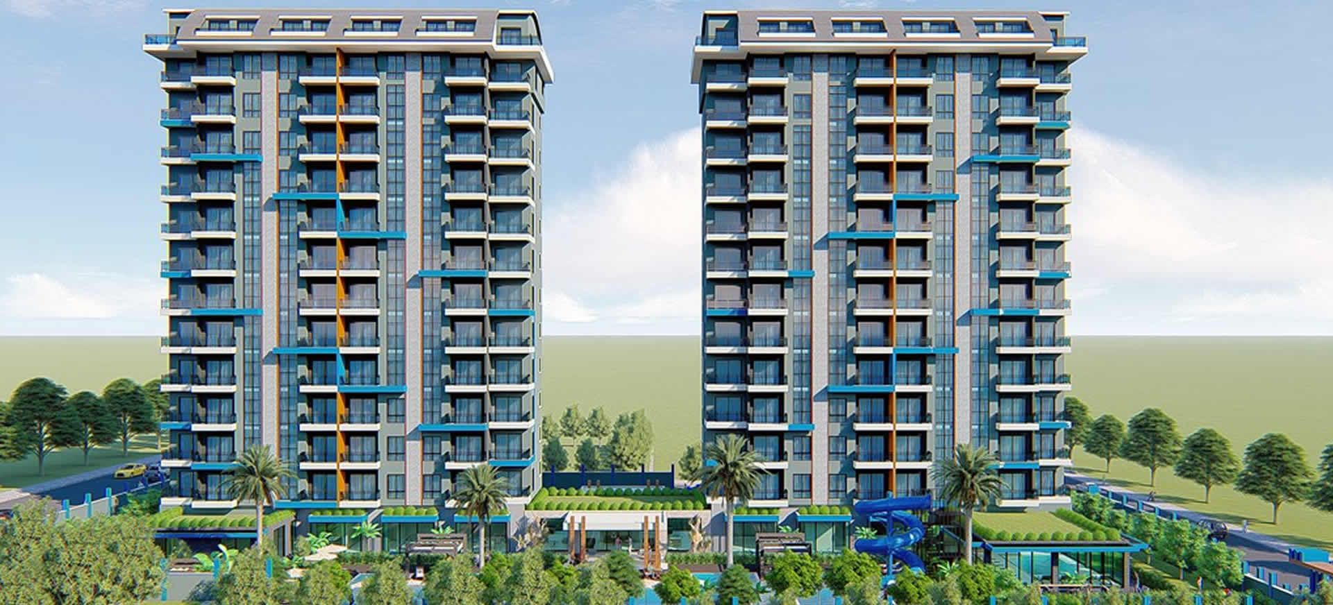 Exodus Hill, as the name suggests, will be located in the hills overlooking Mahmutlar, arguably the residential district of Alanya that is most popular with foreign buyers. The project comprises 2 Blocks of 11 floors and a total of 144 apartments – the majority of these are 1 bedroom units, ranging in size from 51 m2 – 63 m2. There are also 2 bedroom apartments available and a limited number of duplex penthouses (with either 2, 3 or 4 bedrooms).